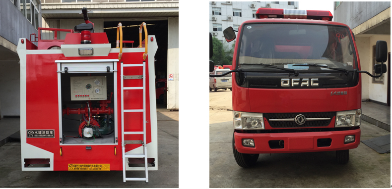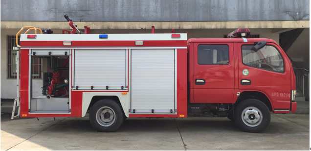 JDF5073GXFSG20/B型水罐消防車,采用東風(fēng)EQ1070DJ3BDF底盤改裝而成。整車由消防員乘員室和車身兩大部分組成,乘員室為原裝雙排,可乘坐2+3人,該車為內(nèi)倉(cāng)罐結(jié)構(gòu),車身前部為水罐+器材箱,后部為泵房。載液罐體為優(yōu)質(zhì)碳鋼,與底盤采用彈性連接,載水2030kg,裝備了上海雄真消防設(shè)備有限公司生產(chǎn)CB10/20-XZ型消防泵,額定流量20L/S,車頂安裝成都威斯特消防機(jī)械有限公司生產(chǎn)的PS20W型車用消防炮。該車最大的特點(diǎn)是機(jī)動(dòng)靈活、操控性好、維修簡(jiǎn)便??蓮V泛應(yīng)用于公安消防隊(duì)、廠礦企業(yè)及社區(qū)、碼頭等場(chǎng)所,撲救一般物質(zhì)火災(zāi)。
