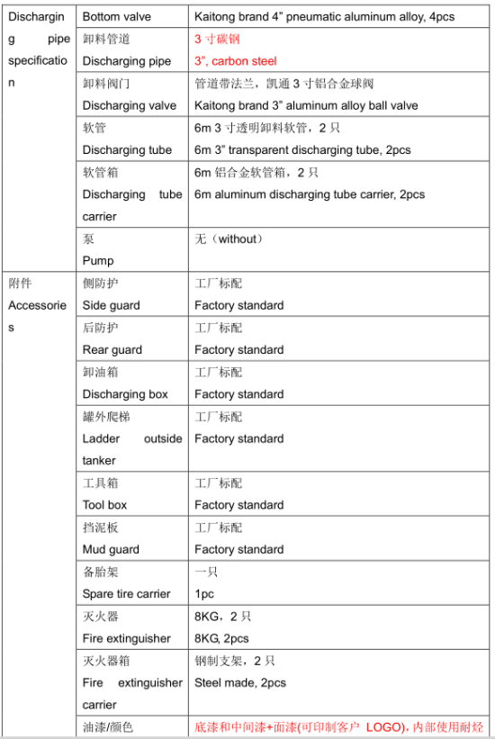 半掛55立方油罐車出口車型配置說明: